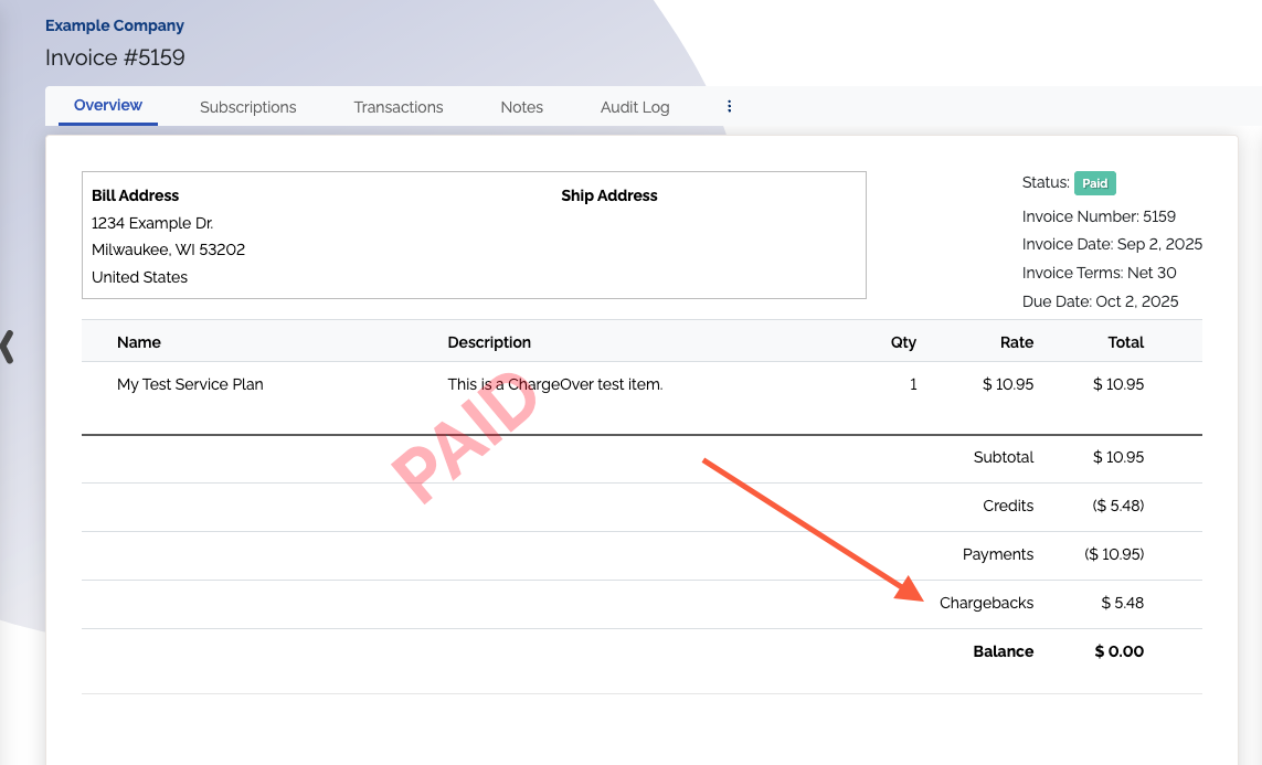 #Chargebacks show on invoices