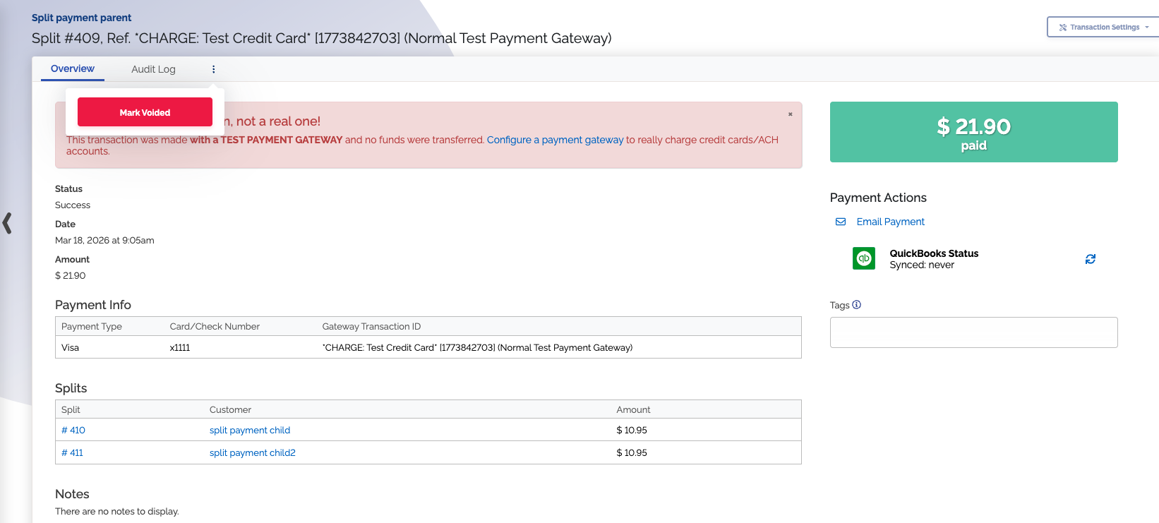 #Ability to void split payments made by parent customers