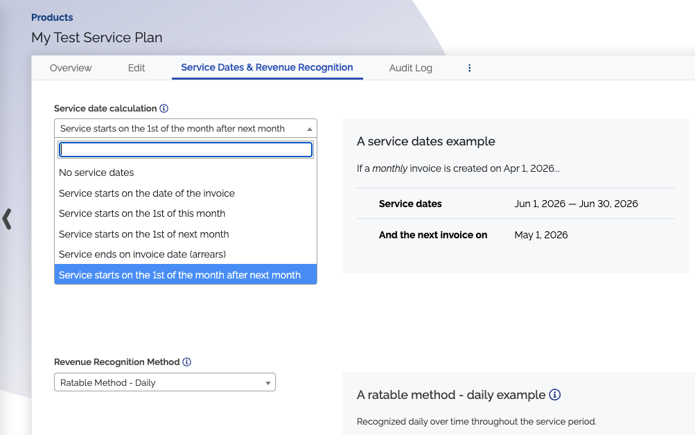 There's a new service date option to start on the first of the month after next. This can be helpful if the first of next month is too soon, and you need a month to complete onboarding, finalize contracts, or finish other preparations before the service start date.